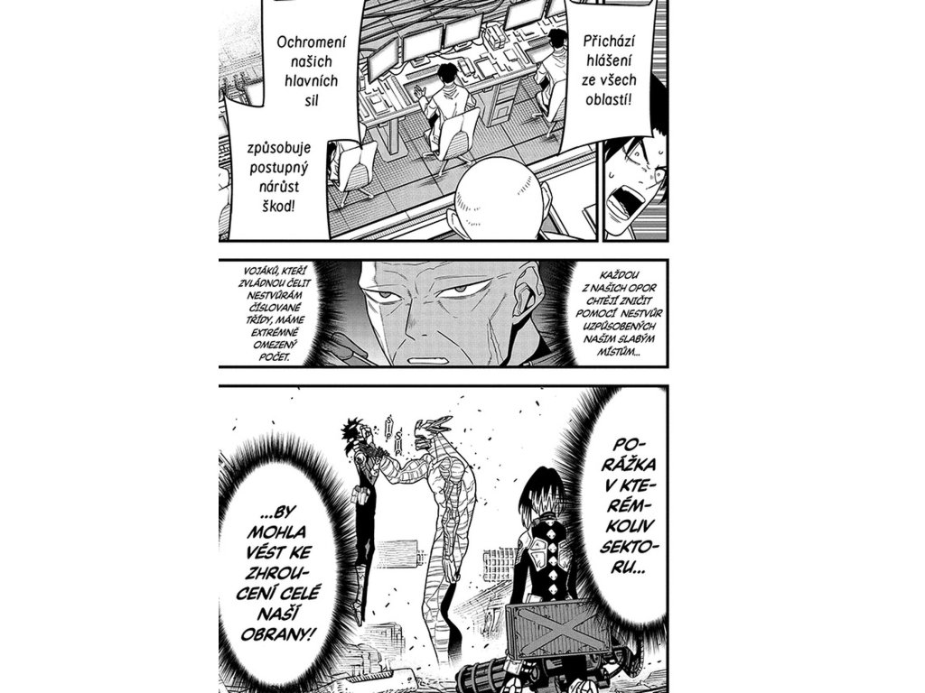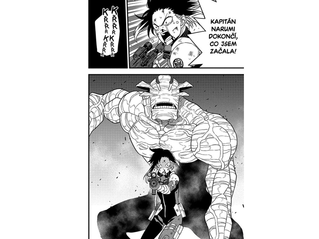 Pětice velestvůr stvořených Číslem 9 podnikla koordinovaný útok na pozice Východní divize rozptýlené po Tokiu a v jeho okolí. Každá z nich je přizpůsobena na míru jedné z klíčových opor Obranných sil, které jsou jedna po druhé zataženy do nerovného boje. Kafka mezitím vzpomíná na slib, který před bitvou dal Kikoru. Co to jen mohlo být??