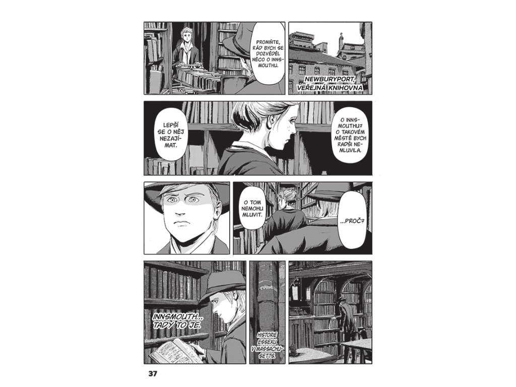 V zimě na přelomu let 1927–1928 vyslala federální vláda několik stovek vyšetřovatelů, aby prozkoumali starý massachusettský přístav Innsmouth. Došlo k tomu na popud jistého mladého muže, jenž se do těchto končin vydal pátrat po svých předcích a jehož těžko uvěřitelné vyprávění bylo směsicí znepokojivých zkazek a děsivých nočních můr hraničících s naprostými halucinacemi. Temnými pověstmi opředené městečko proslulo řadou tajemství, povětšinou spojených s mořem a nedalekým Ďáblovým útesem… Mistr moderního komiksového hororu Gó Tanabe přichází s mrazivou manga adaptací jediného příběhu H. P. Lovecrafta, který byl ještě za autorova života vydán knižně!