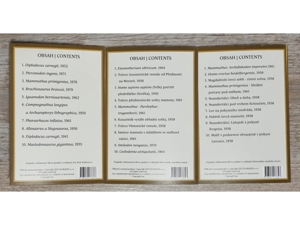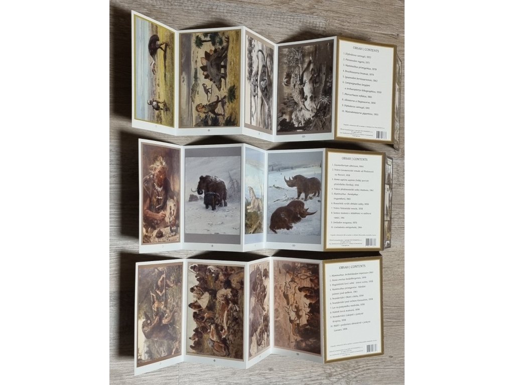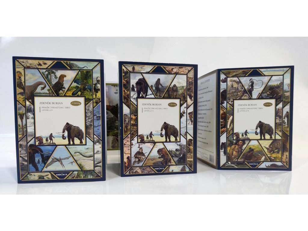 Leporela ( Pravěk/ Prehistoric times I-III) vychází z ediční řady Paleoart a další pravěké náměty. Leporello I obsahuje díla, která se nachází ve sbírkách Zoo Dvůr Králové a.s. Leporello II a Leporello III, obsahují díla, která se nachází ve sbírkách Moravského zemského muzea.